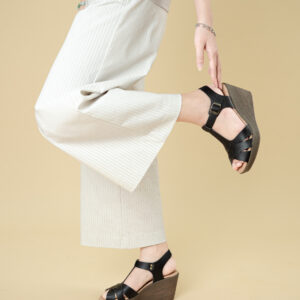 軽量で歩きやすく、長時間の着用でも疲れにくい設計が特徴です。ウェッジソールは脚を美しく見せるだけでなく、安定感も提供し、さまざまなシーンで活躍します。